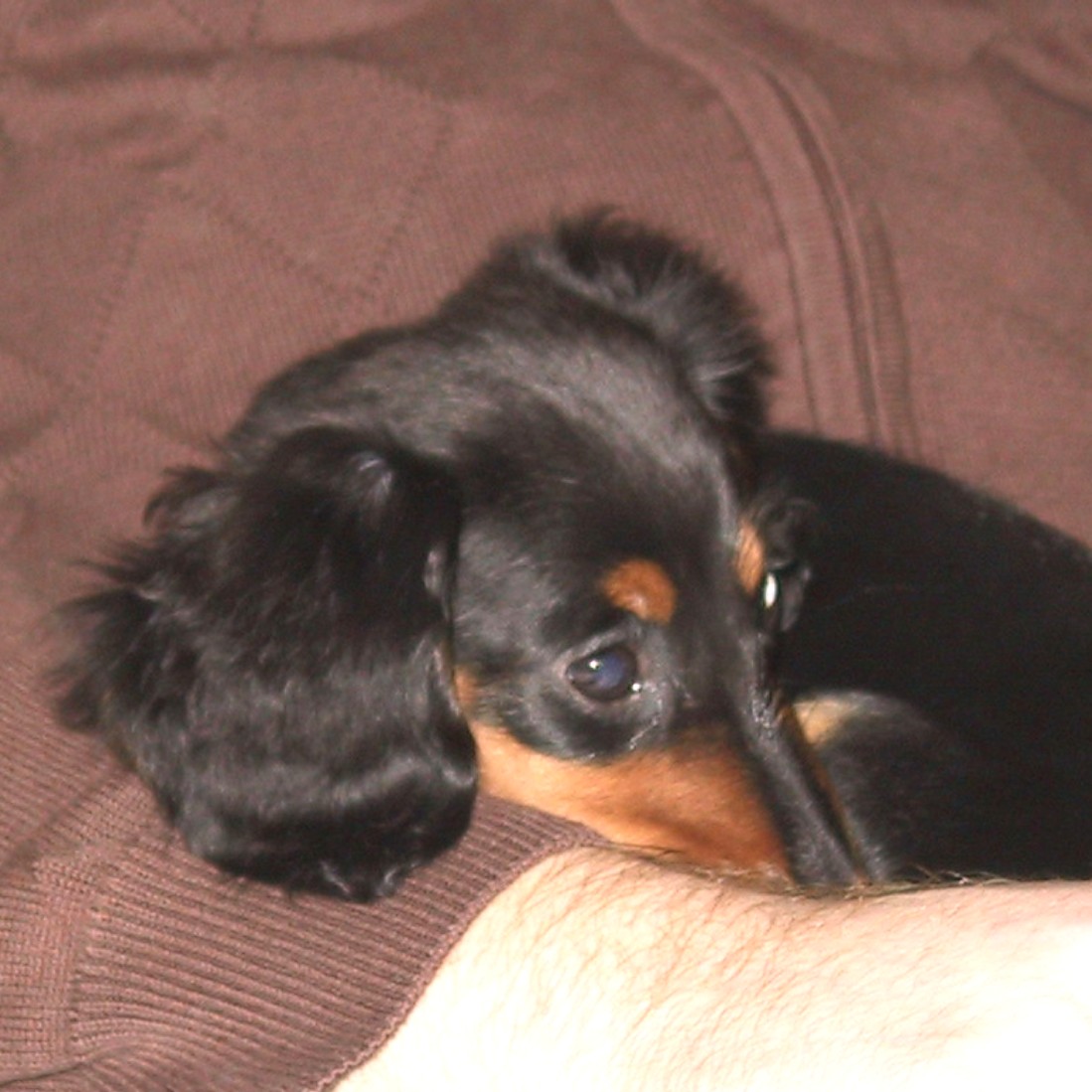 Bill and Amanda have adopted a miniature Dachshund. Her Name is Bella, and she is adorable. As of this picture, she is six weeks old. She will be staying with Amanda, out at Kutstown, while she is at college. I took some pictures of Bill playing with Bella at Jake and Jen's new place.